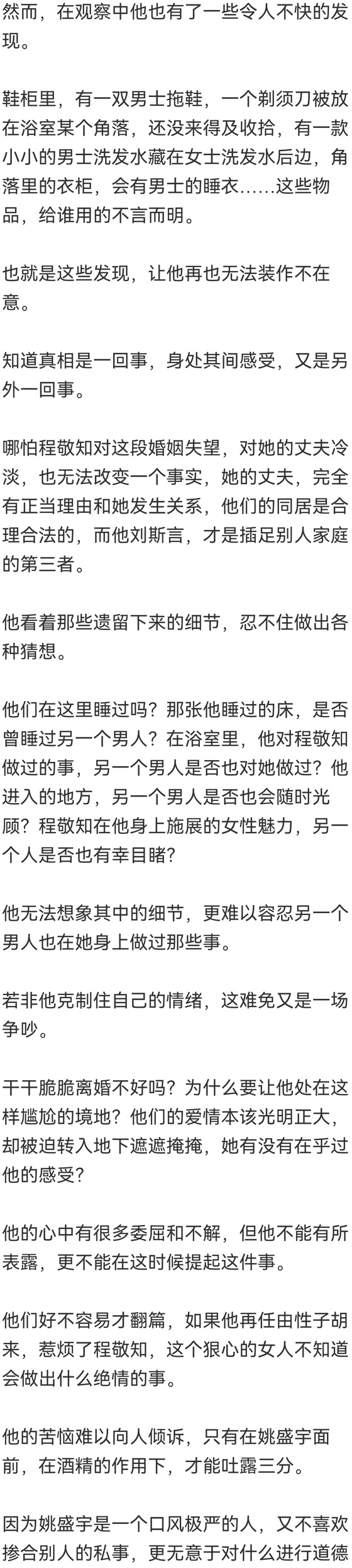 刘斯言曾给他的爱情指点迷津,让他和敬知的关系有所突破,姚盛宇也不介意以一个旁观者的身份给他提供一些思路,哪怕这些思路不那么道德。