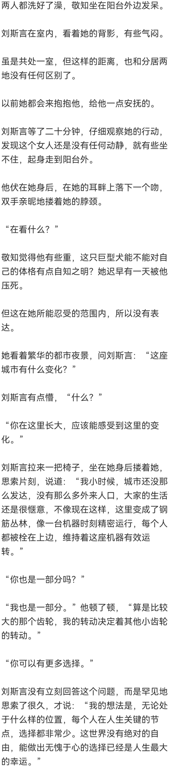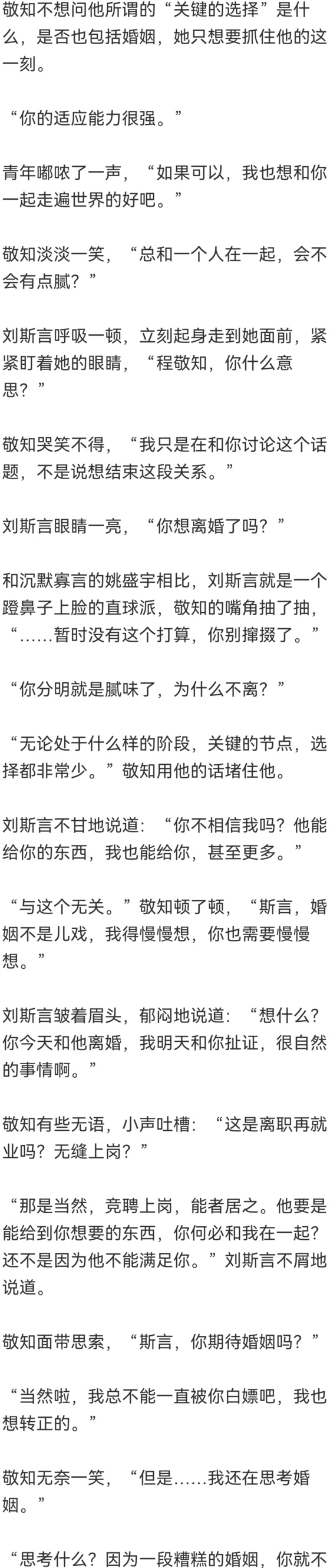 敬知有些惊讶,他提起她的婚姻,提起她的丈夫时,是那么自然,就像是在询问她巧克力味的蛋糕好吃还是榴莲味的蛋糕好吃。